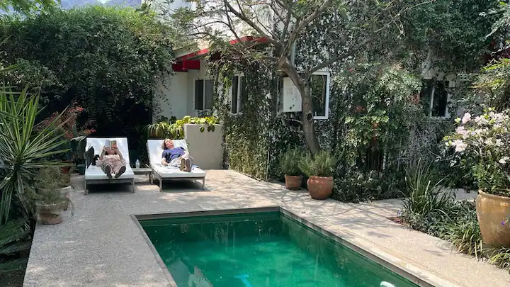 - Amenities: Dedicated workspace, Free parking on premises, Free WiFi, Hair dryer, Host greets you, Kitchen, Long term stays allowed, Pets allowed, Shampoo, Swimming Pool